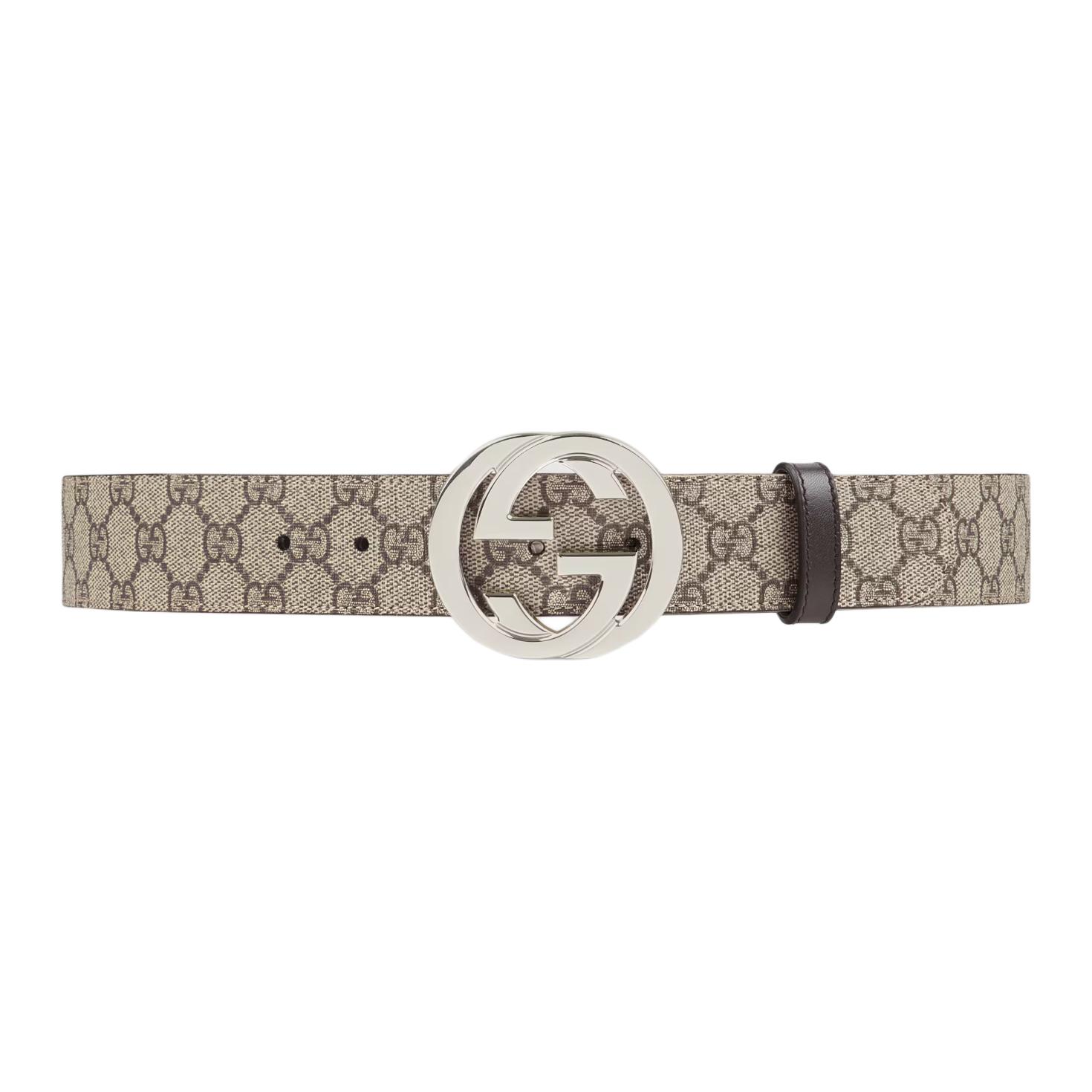 GUCCI古驰 GG Supreme 印花设计 皮革 皮带 男女同款情侣款 米色 -