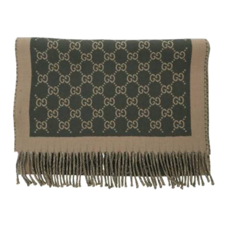 GUCCI古驰 个性设计 拉纳纤维 绒线围巾 男女同款情侣款 褐色
