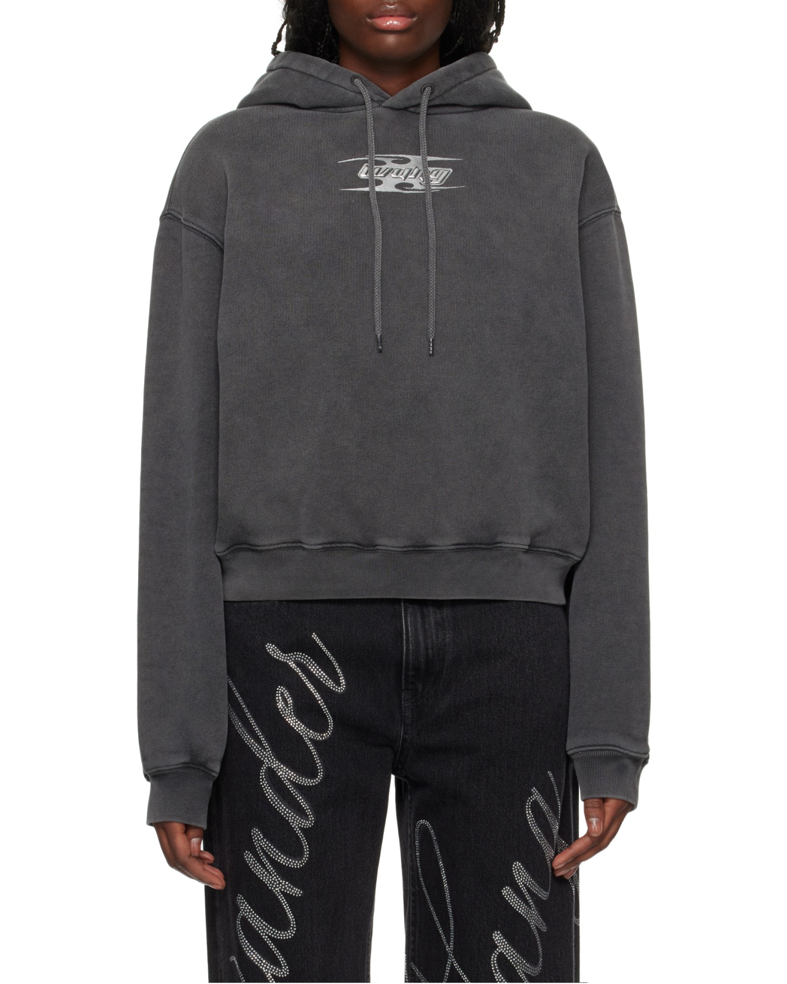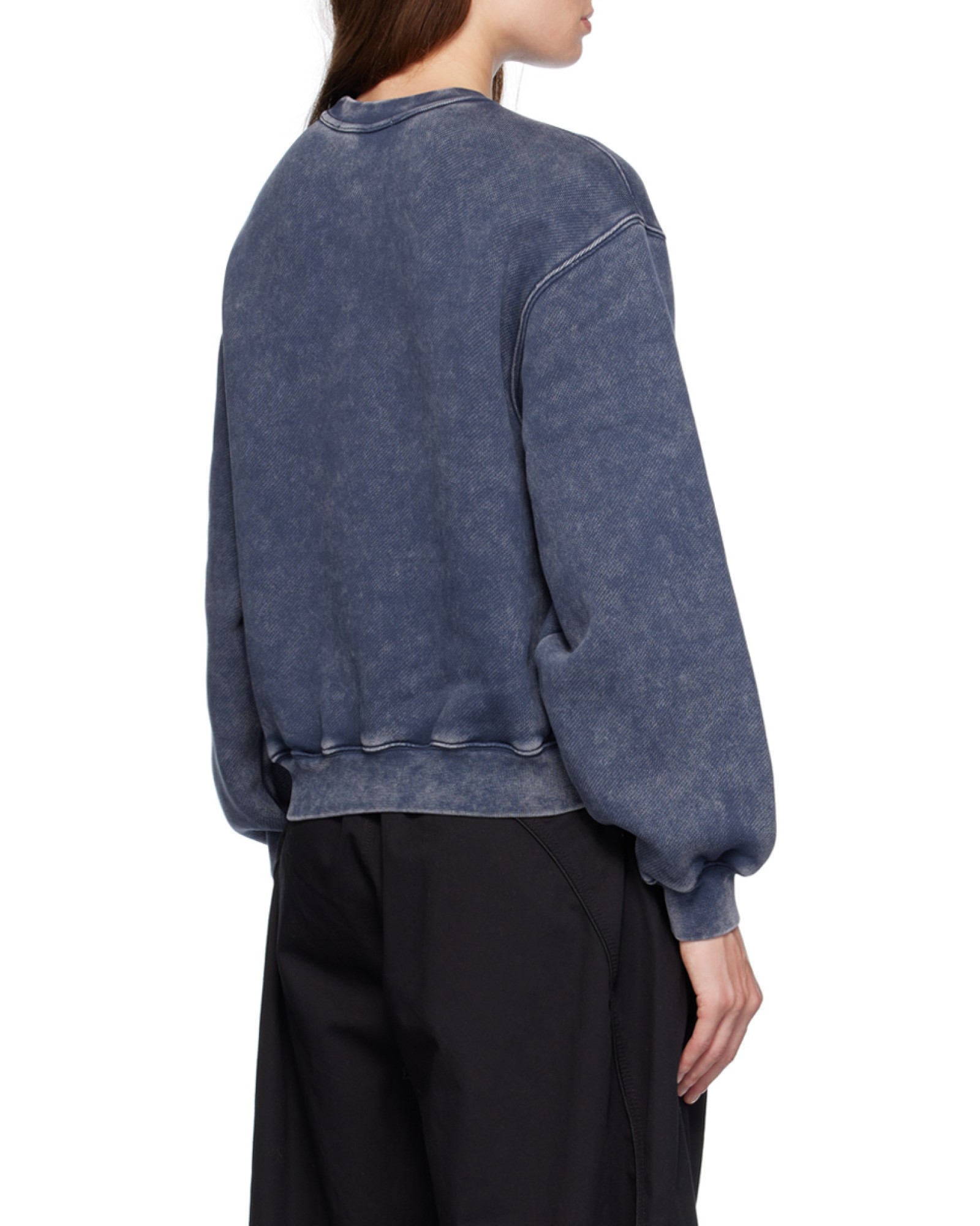 alexander wang亚历山大王 FW24 徽标装饰圆领套头落肩加绒卫衣 女款 酸洗黑冰色