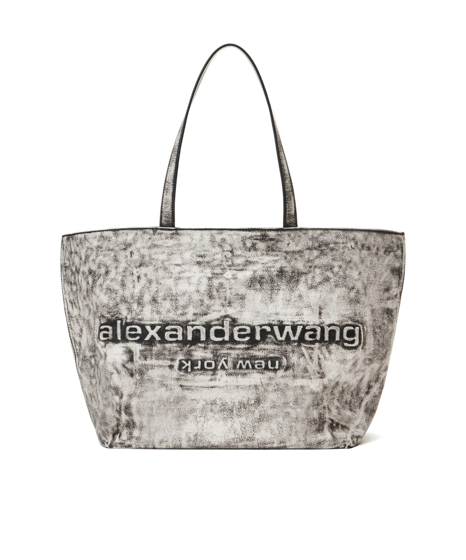 alexander wang亚历山大王 凸纹字母徽标撞色设计 牛皮 托特包Tote包购物袋单肩包 大号 女款 灰白色