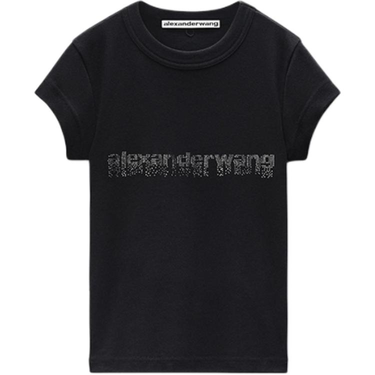 alexander wang亚历山大王 FW25 烫钻渐变徽标棉质平纹针织修身罗纹圆领短袖 T恤 女款
