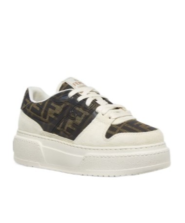 FENDI芬迪 Match 皮革 圆头系带 低帮 板鞋 男款 米白色