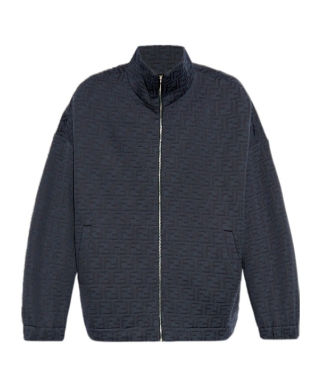 FENDI芬迪 SS25 印花拉链贴边袋长袖夹克外套 男款 蓝色