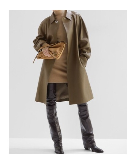 FENDI芬迪 FW24 纯色紧身短款长袖连衣裙 女款 米色