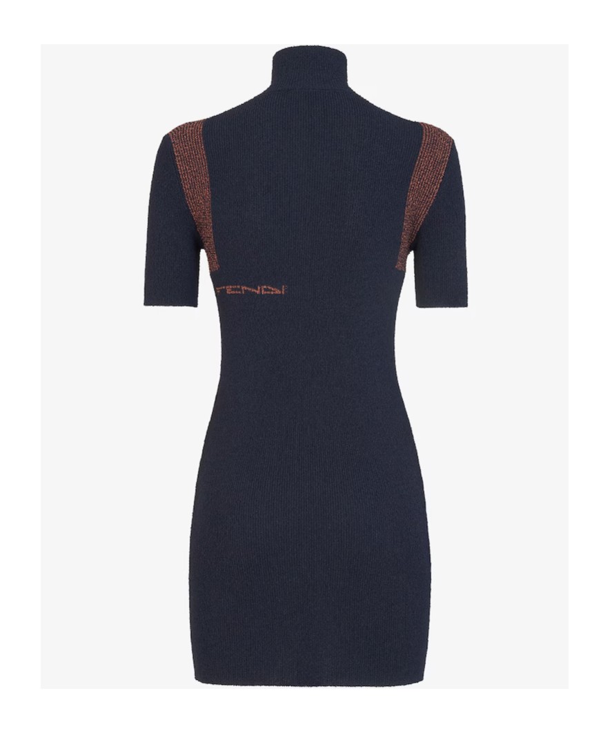 FENDI芬迪 SS24 撞色嵌花图案修身短款短袖连衣裙 女款 蓝色
