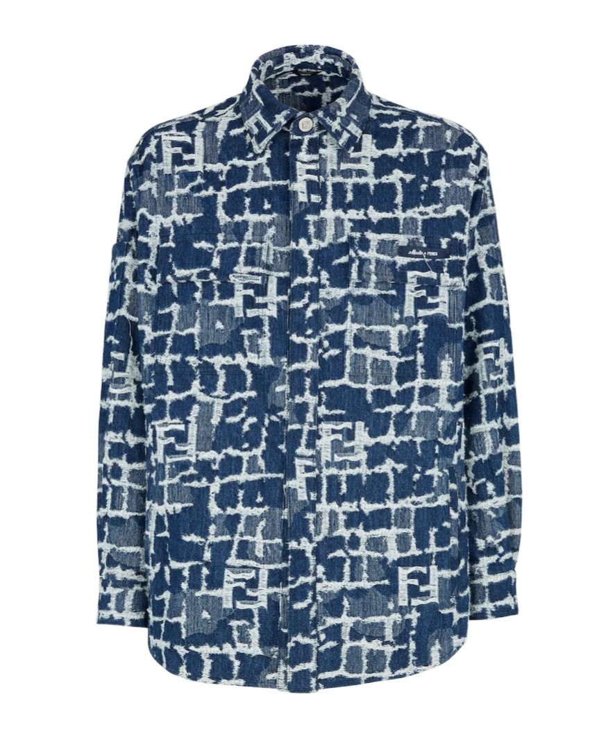 FENDI芬迪 SS24 Logo图案翻领单排扣长袖宽松版牛仔外套 男款 蓝色