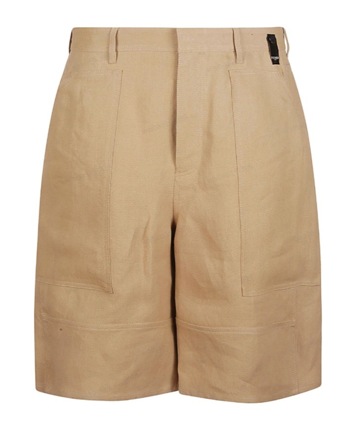 FENDI芬迪 SS23 纯色大口袋毛边休闲短裤 男款 蓝色