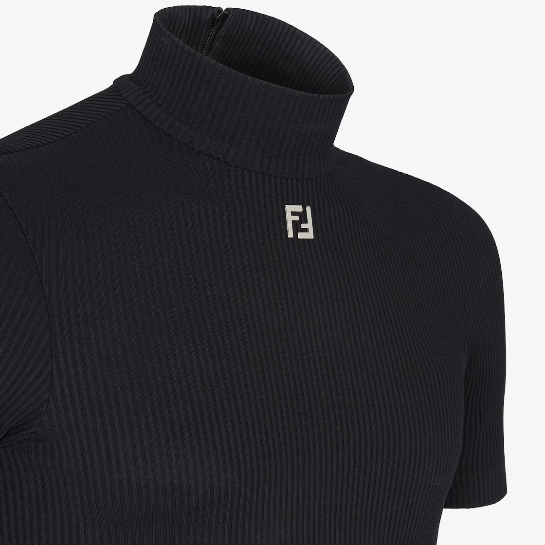 FENDI芬迪 SS24 纯色罗纹高领修身短袖针织衫 男款 黑色