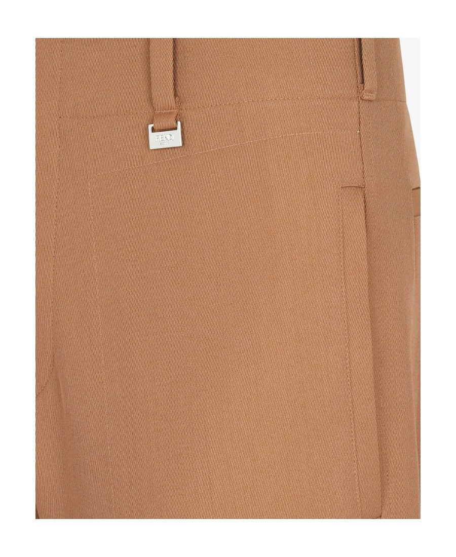 FENDI芬迪 SS23 纯色羊毛拉链高腰直筒休闲裤 男款 棕色