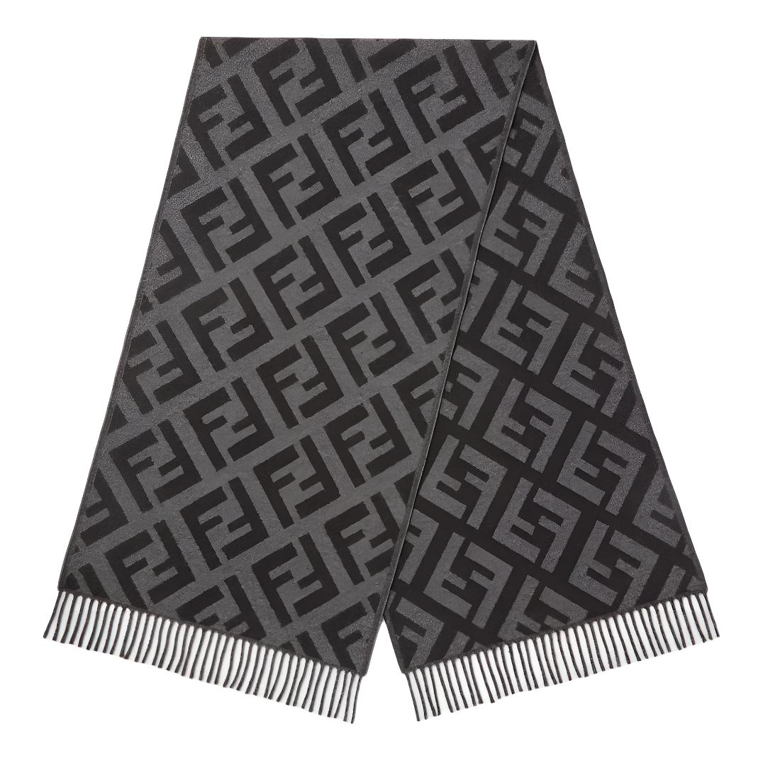 FENDI芬迪 【26早春系列】FF圖案 絨線圍巾 男款 灰色/黑色