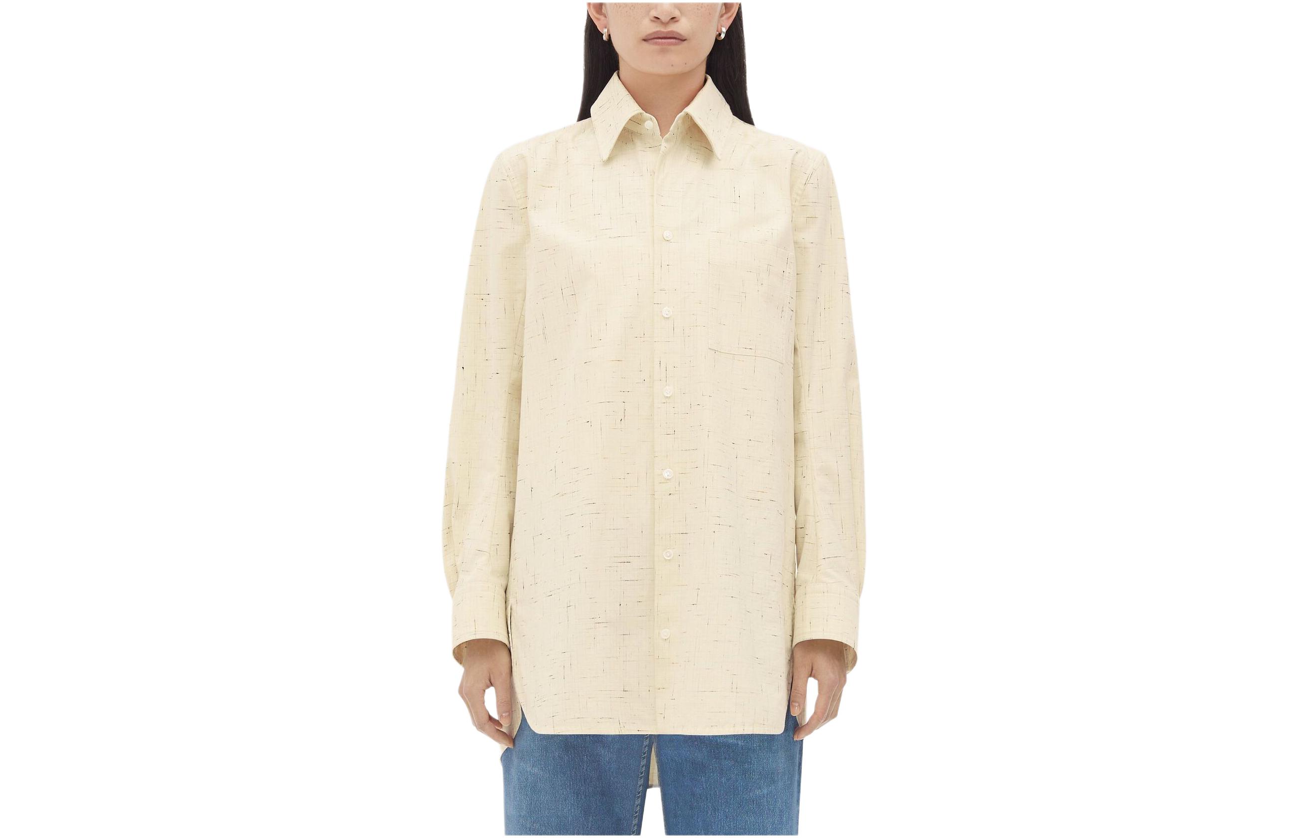 Bottega Veneta葆蝶家 Textured Criss-Cross Cotton Shirt 条纹满印翻领单排扣长袖衬衫 女款 米色