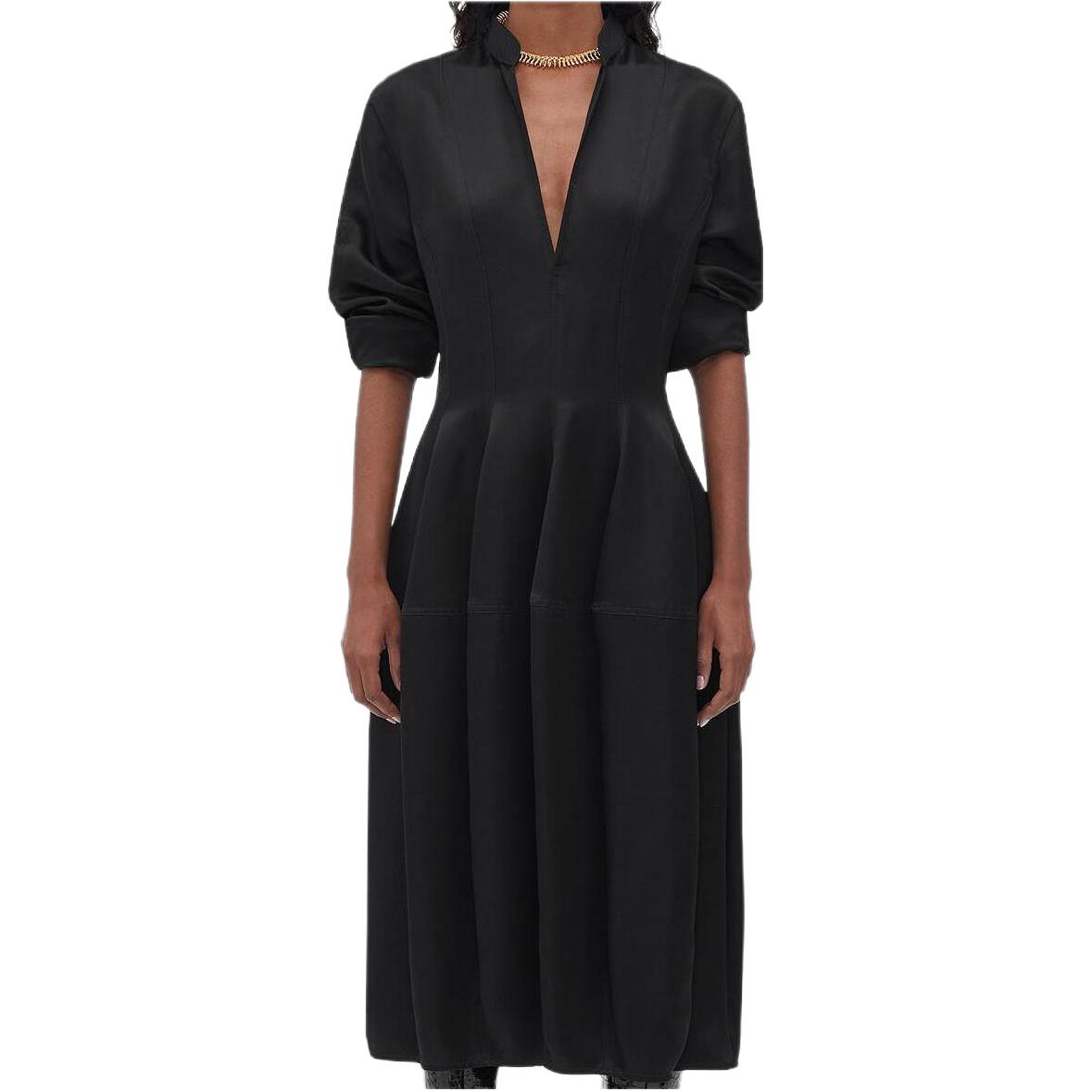 Bottega Veneta葆蝶家 FW22 纯色深V领长袖连衣裙 女款