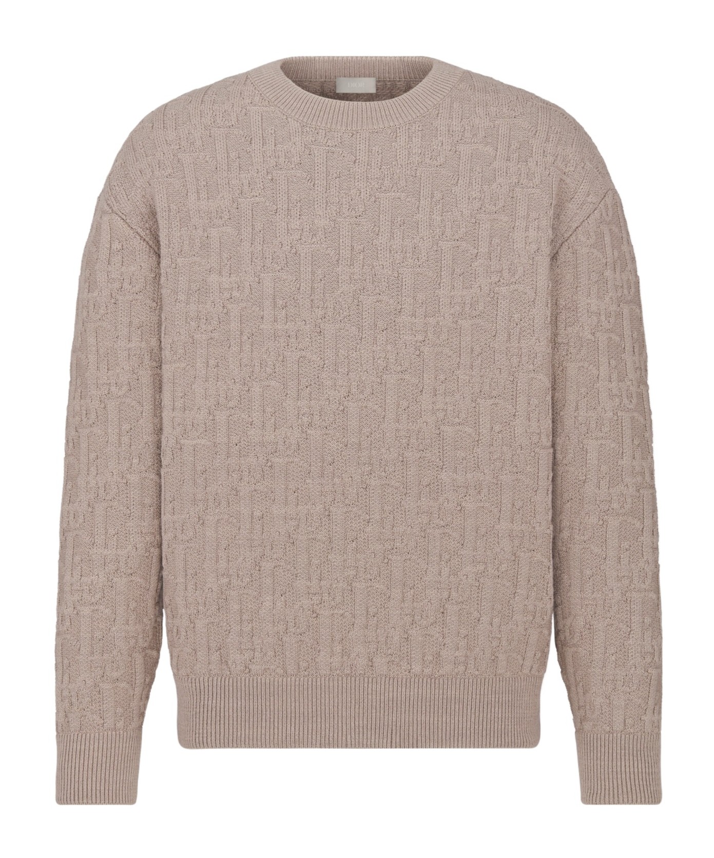 DIOR迪奥 SS25 夏季男装系列 棉质宽松提花Oblique印花圆领长袖针织衫 男款 米色