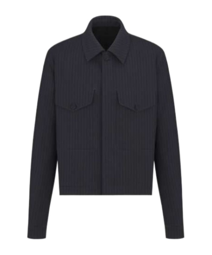 DIOR迪奥 SS25 夏季男装系列 绵羊毛条纹宽角领单排扣夹克外套 男款 黑色