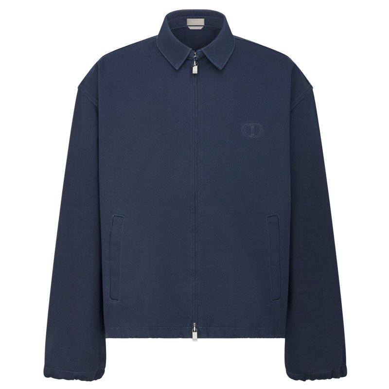 DIOR迪奥 SS25夏季男装系列 棉质斜纹布CD Icon刺绣拉链POLO领夹克外套 男款 海军蓝色