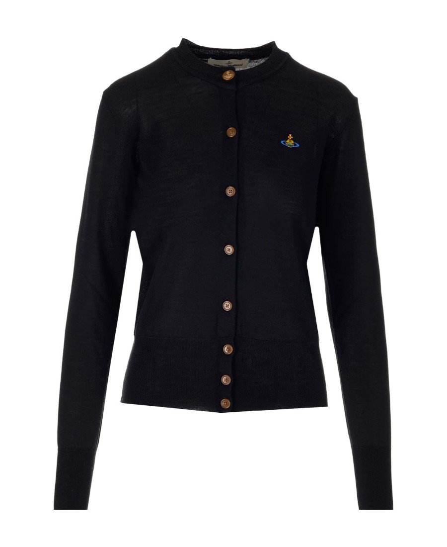 Vivienne Westwood Logo刺绣圆领单排扣长袖针织衫 女款 黑色