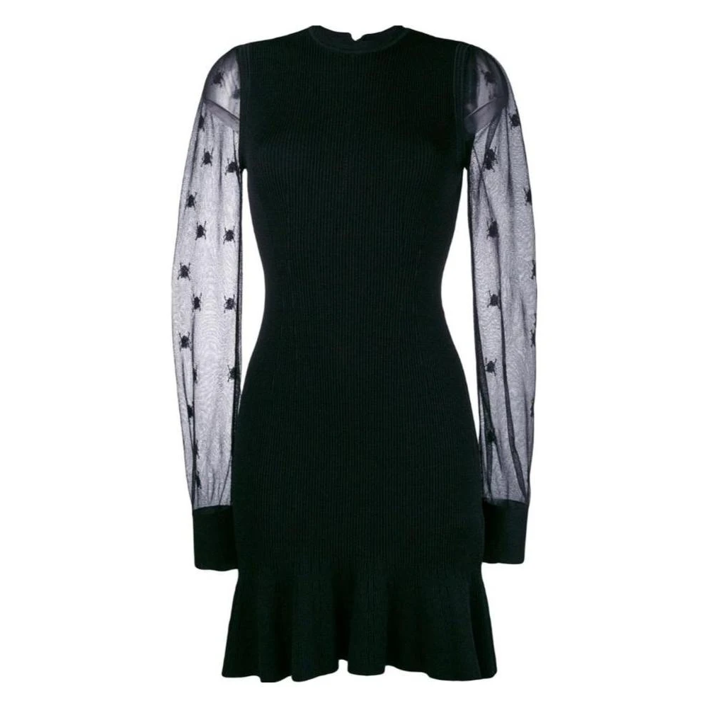 Alexander McQueen亚历山大麦昆 短款圆领拉链长袖连衣裙 女款 黑色