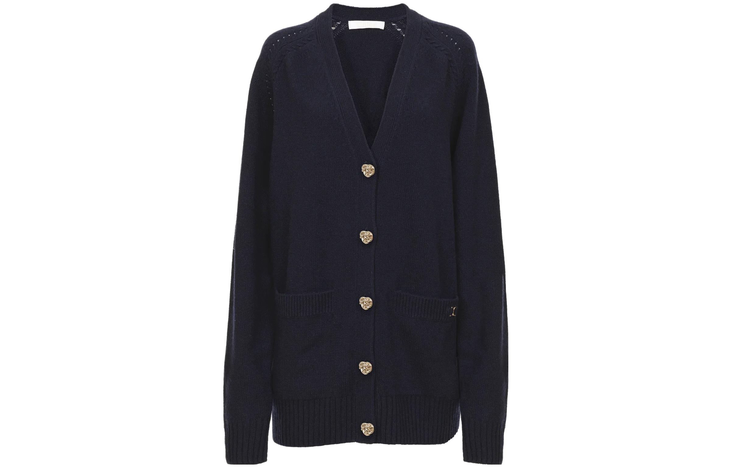 Chloe/蔻依 Generous V-Neck Cardigan 纯色单排扣长袖宽松V领针织衫 女款 藏蓝色