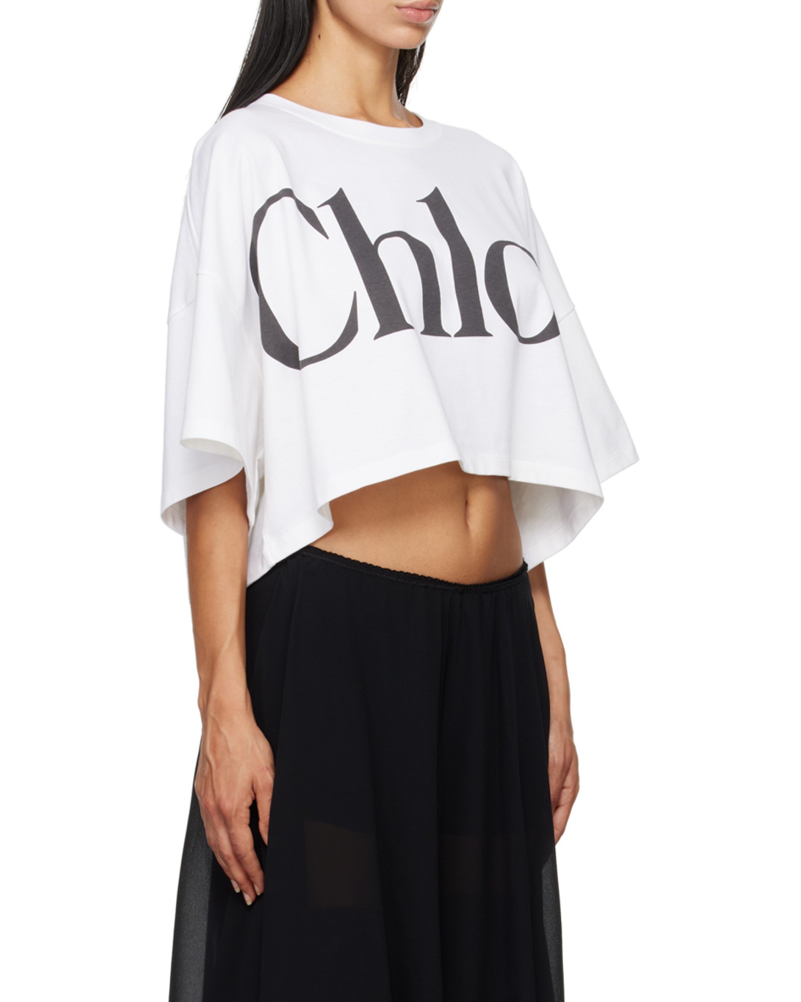 Chloe蔻依 FW24 Logo字母印花圆领短款宽松短袖 T恤 女款 白色