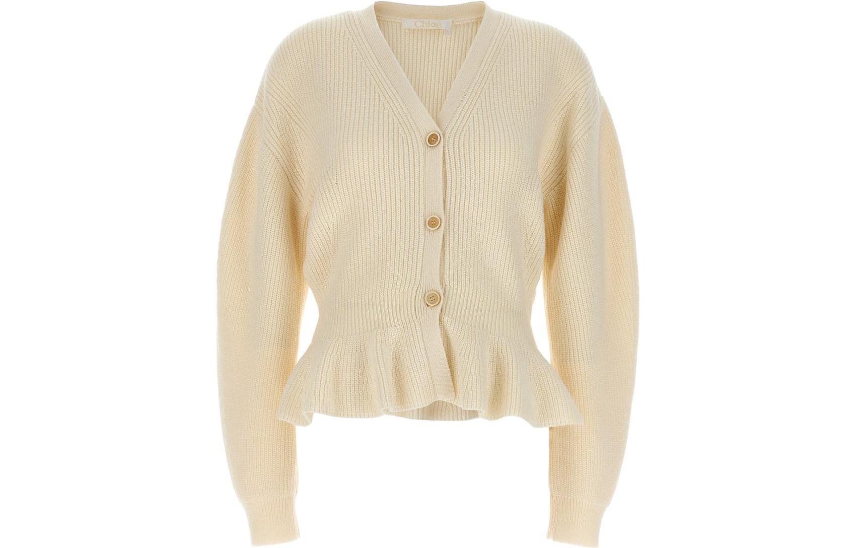 Chloe蔻依 纯色单排扣V领长袖短款毛衣 女款