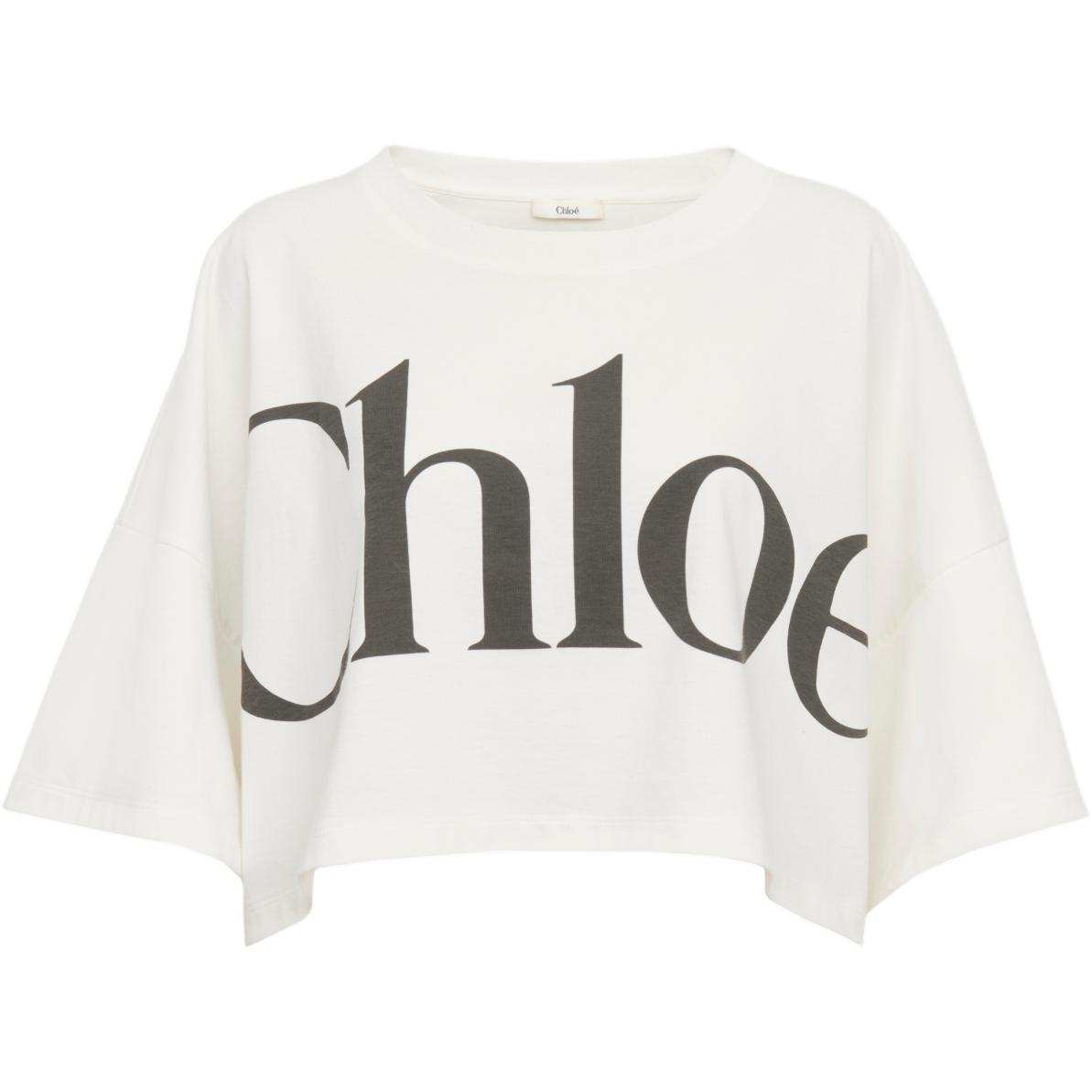 Chloe蔻依 FW24 Logo字母印花圆领短款宽松短袖 T恤 女款 白色
