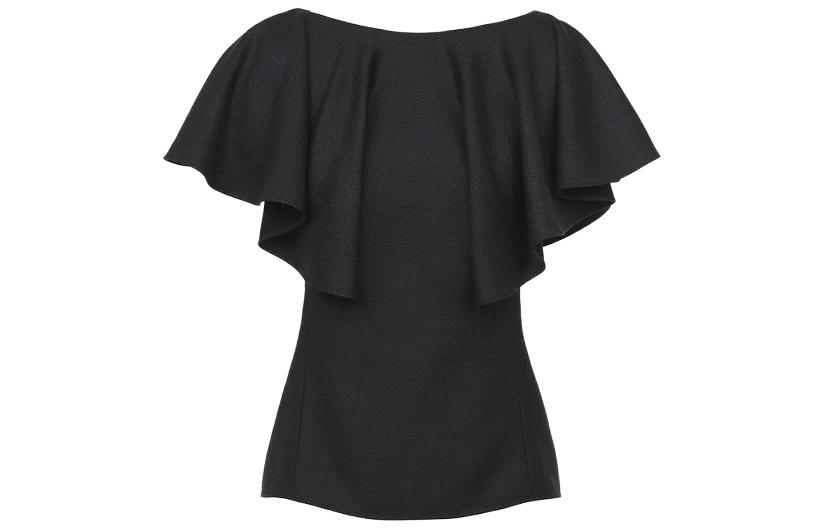 Chloe/蔻依 SS23 纯色荷叶边短袖衬衫 女款 黑色