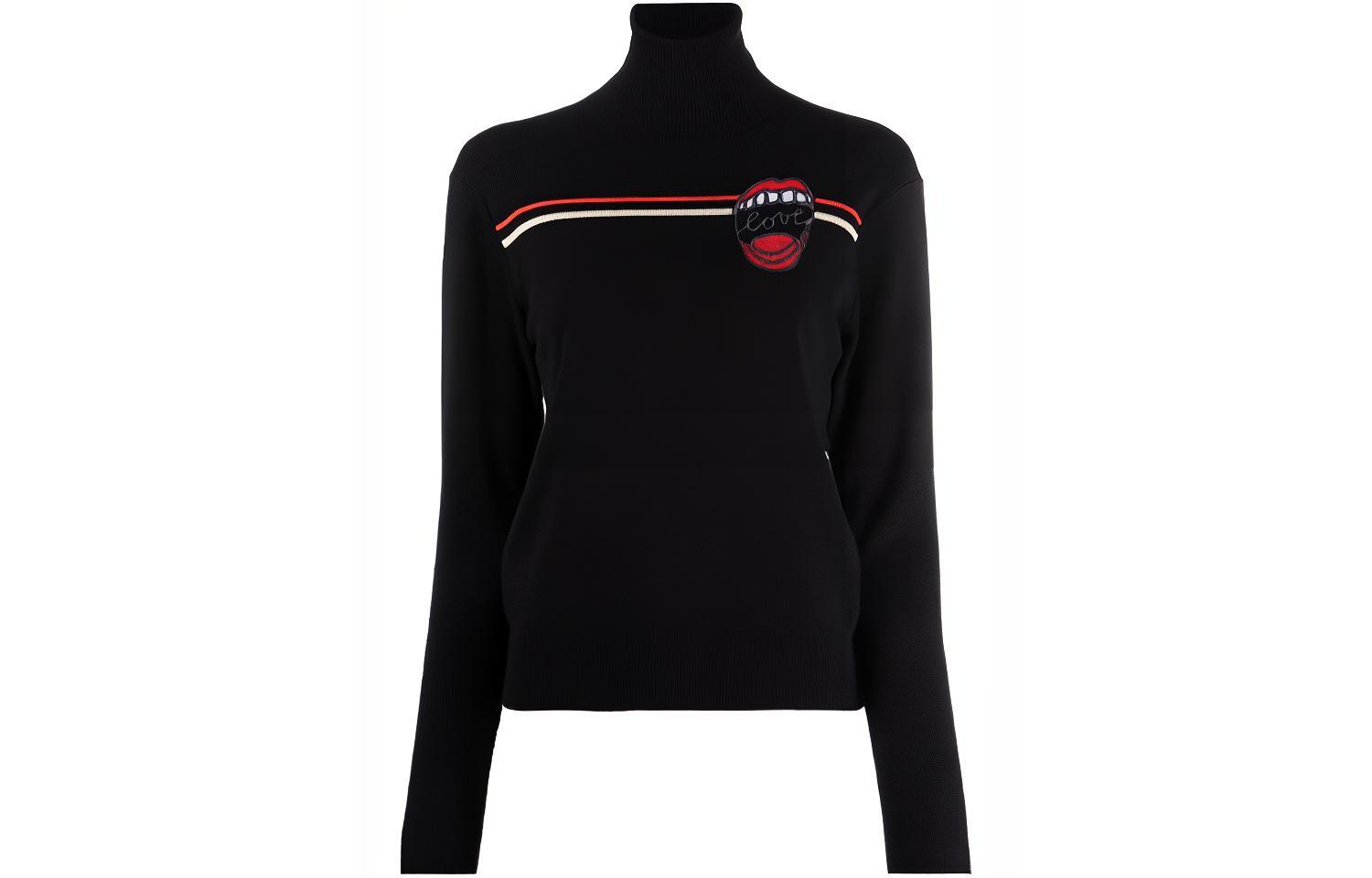 Chloe蔻依 FW21 羊毛图案嵌花针织长袖套头羊毛衫毛衣 女款 黑色