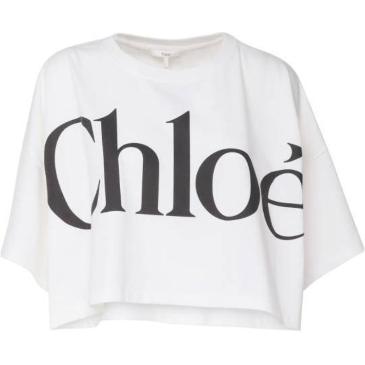 Chloe蔻依 字母Logo印花圆领短款落肩短袖 T恤 女款 白色