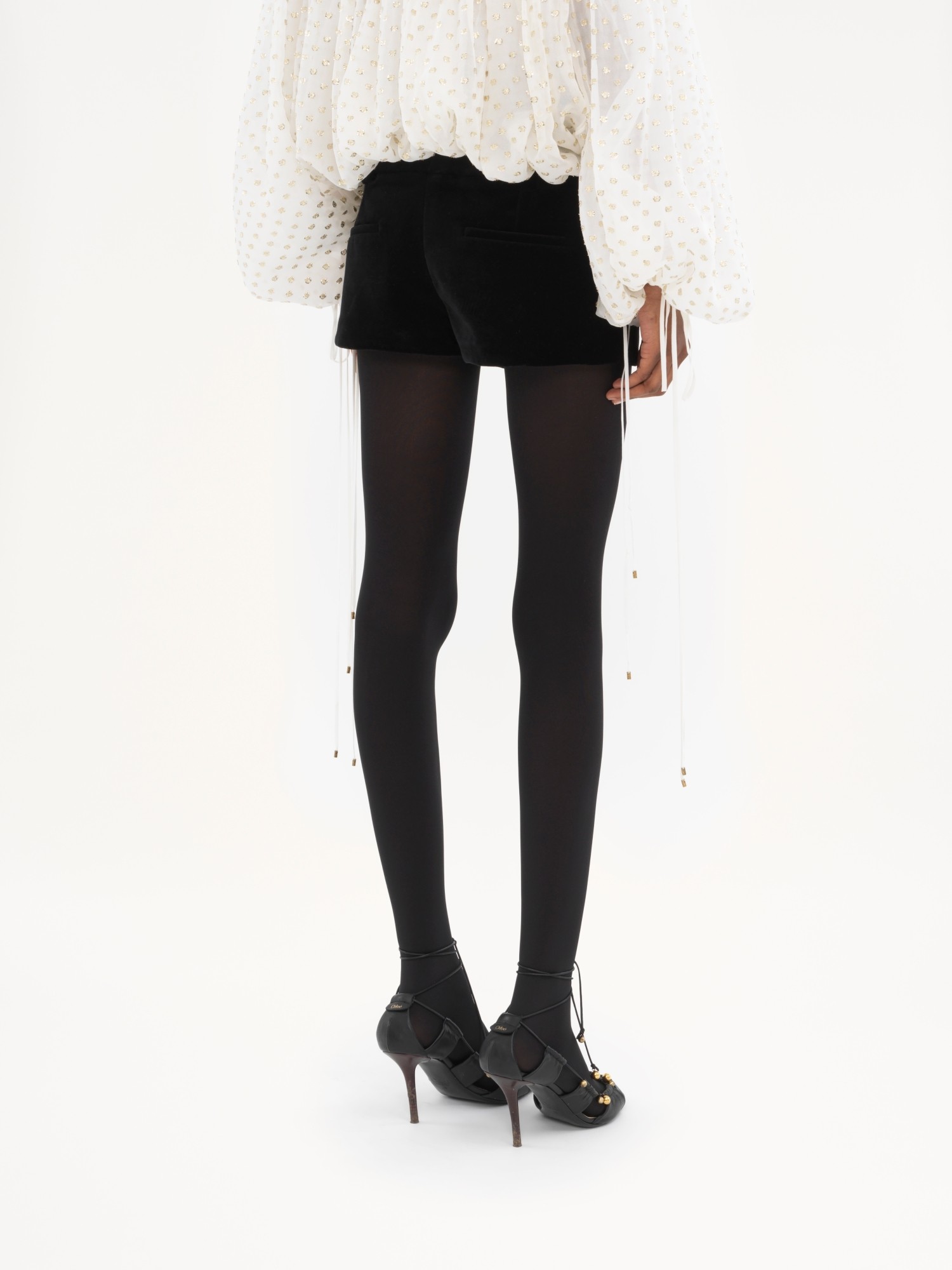 Chloe蔻依 SS23 纯色褶裥长袖衬衫 女款 黑色