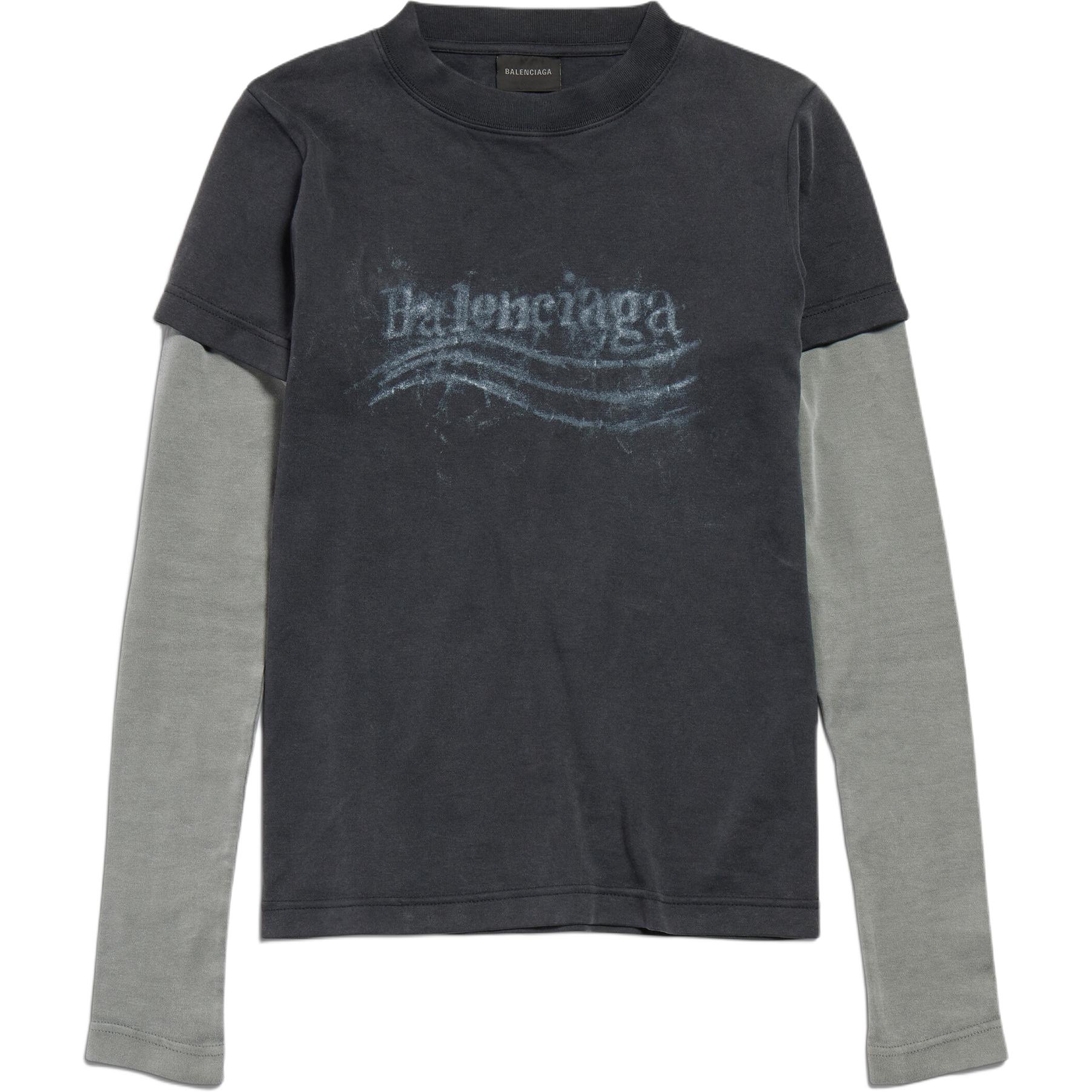Balenciaga巴黎世家 FW25冬季系列 弹力针织圆领印花双袖 常规T恤 女款