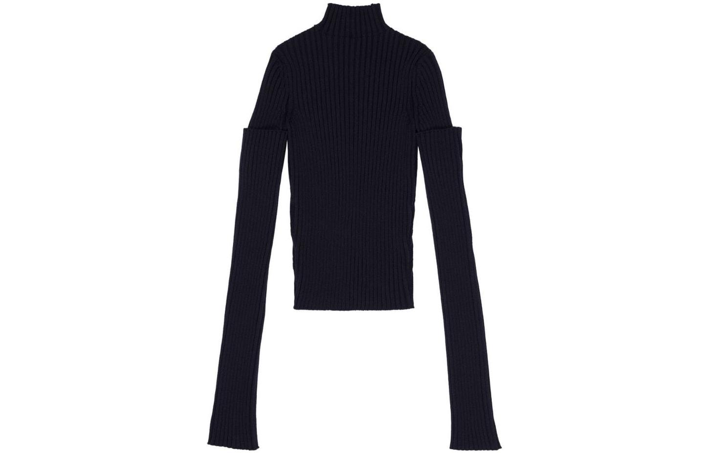 Balenciaga巴黎世家 FW22 纯色混纺修身高领毛衣 女款 海军蓝