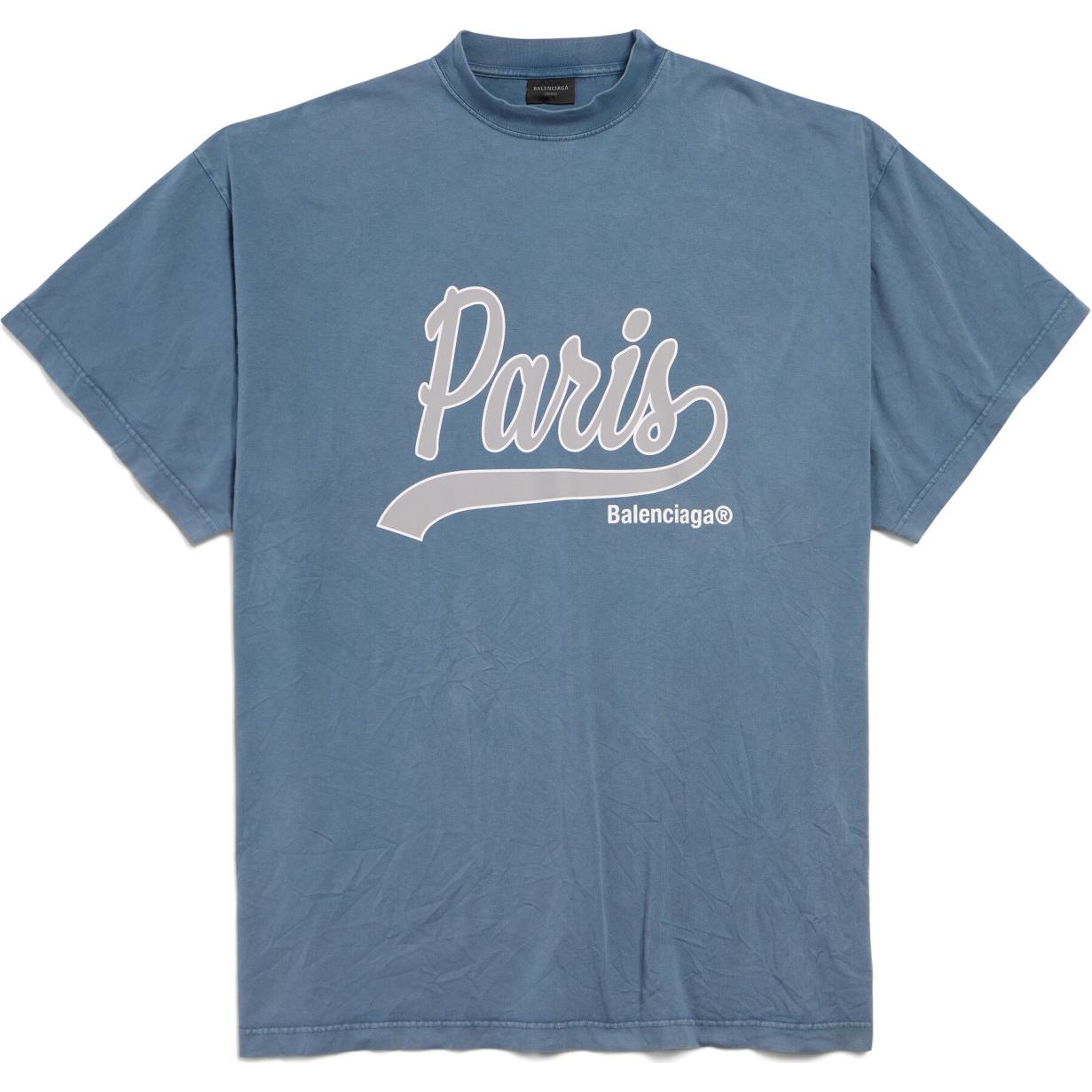 Balenciaga巴黎世家 FW24 字母印花圆领套头短袖T恤 宽松版型 男女同款 褪色蓝色