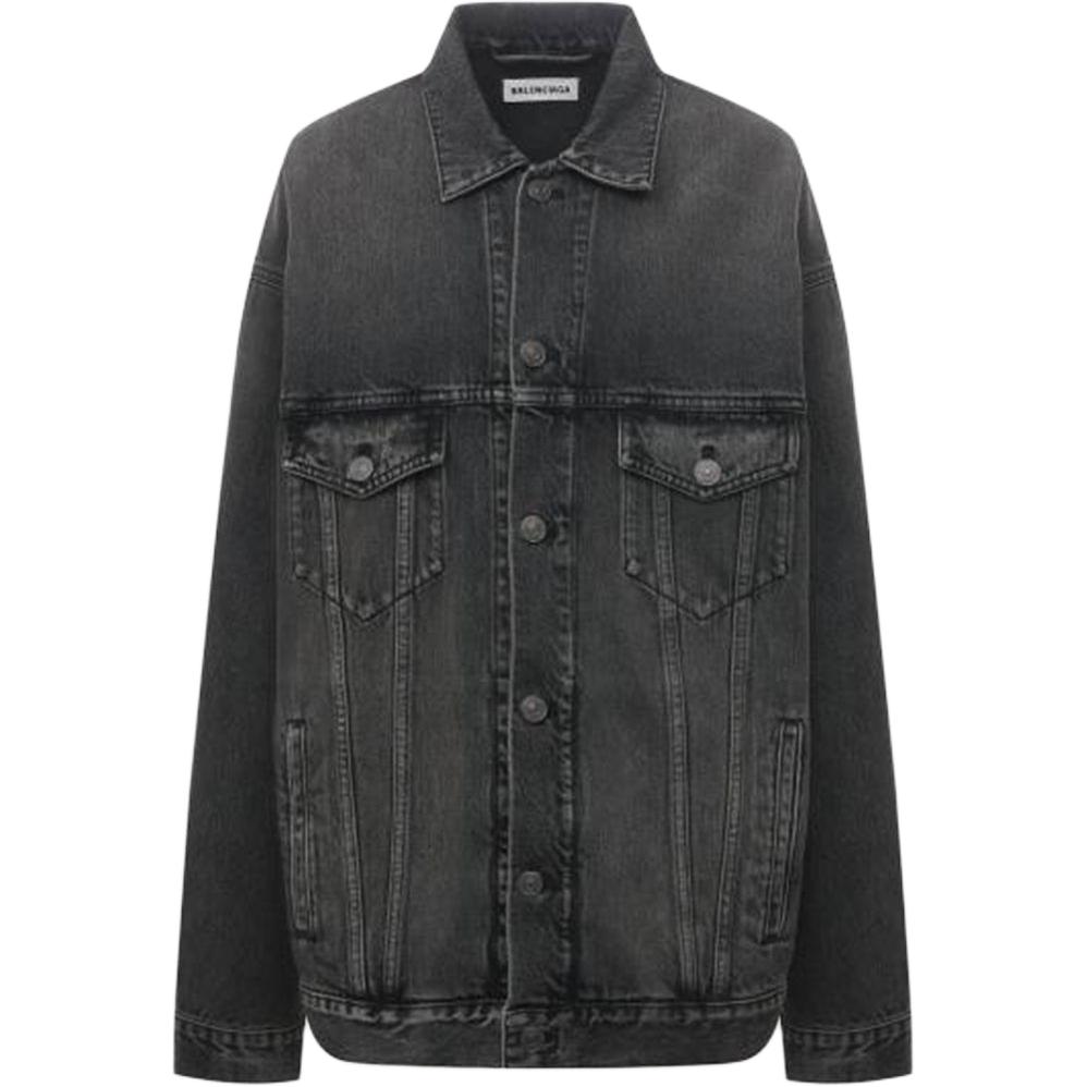 Balenciaga巴黎世家 纯色翻领落肩单排扣长袖牛仔外套 宽松版型 男款 黑色