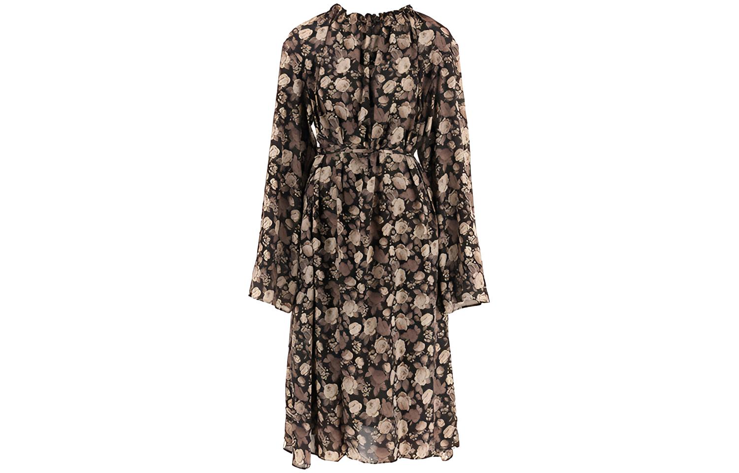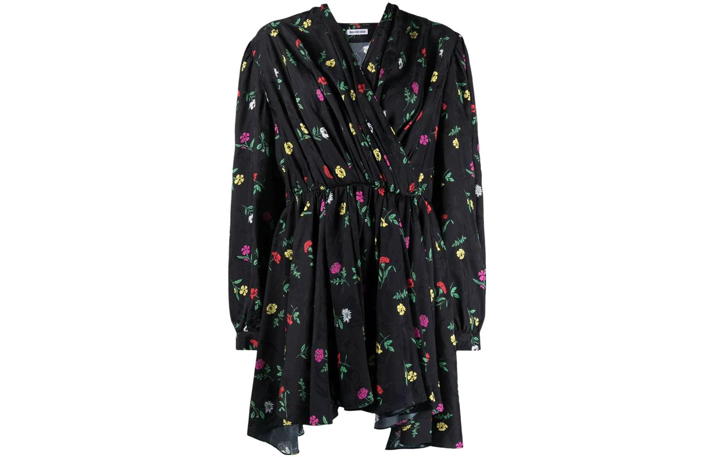 Balenciaga巴黎世家 花卉满印圆领套头长袖连衣裙 常规版型 女款 黑色