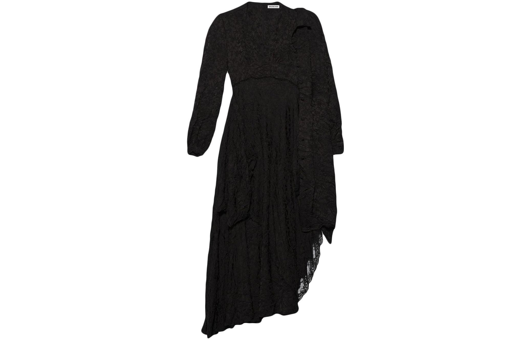 Balenciaga巴黎世家 SS23 纯色圆领不对称长袖连衣裙 常规版型 女款 黑色