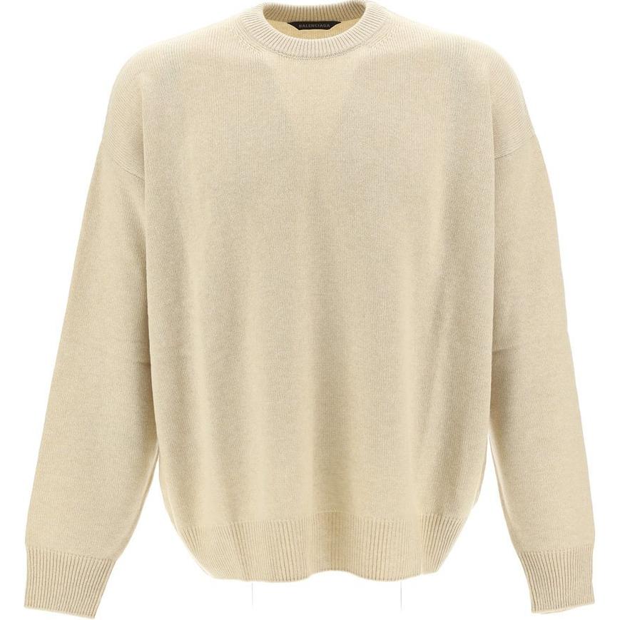 Balenciaga SS23 纯色圆领后置Logo刺绣毛衣 男款 米色