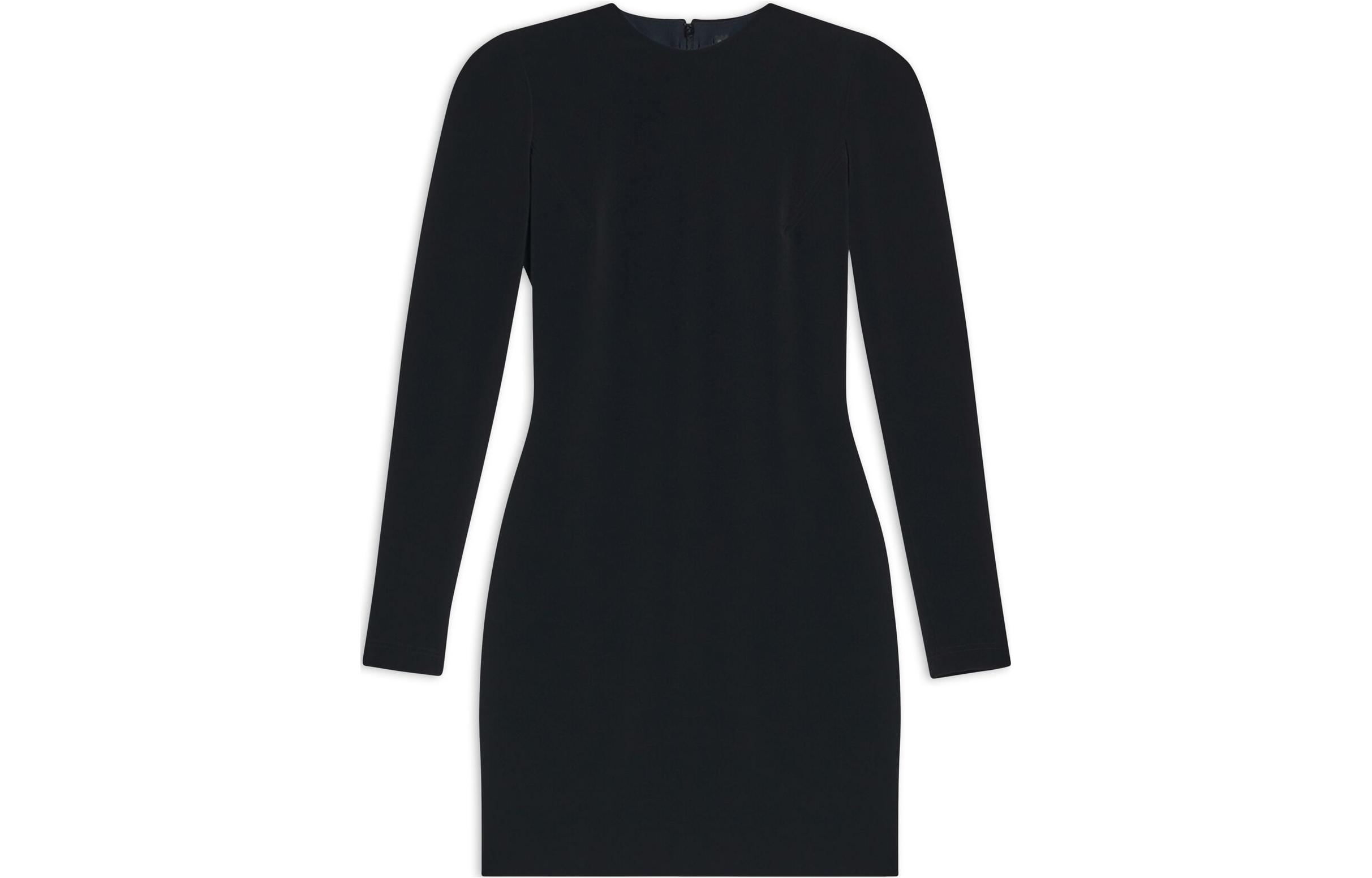 Balenciaga巴黎世家 Garde-robe 系列 SS23 修身版型 纯色弹力长袖连衣裙 女款 黑色