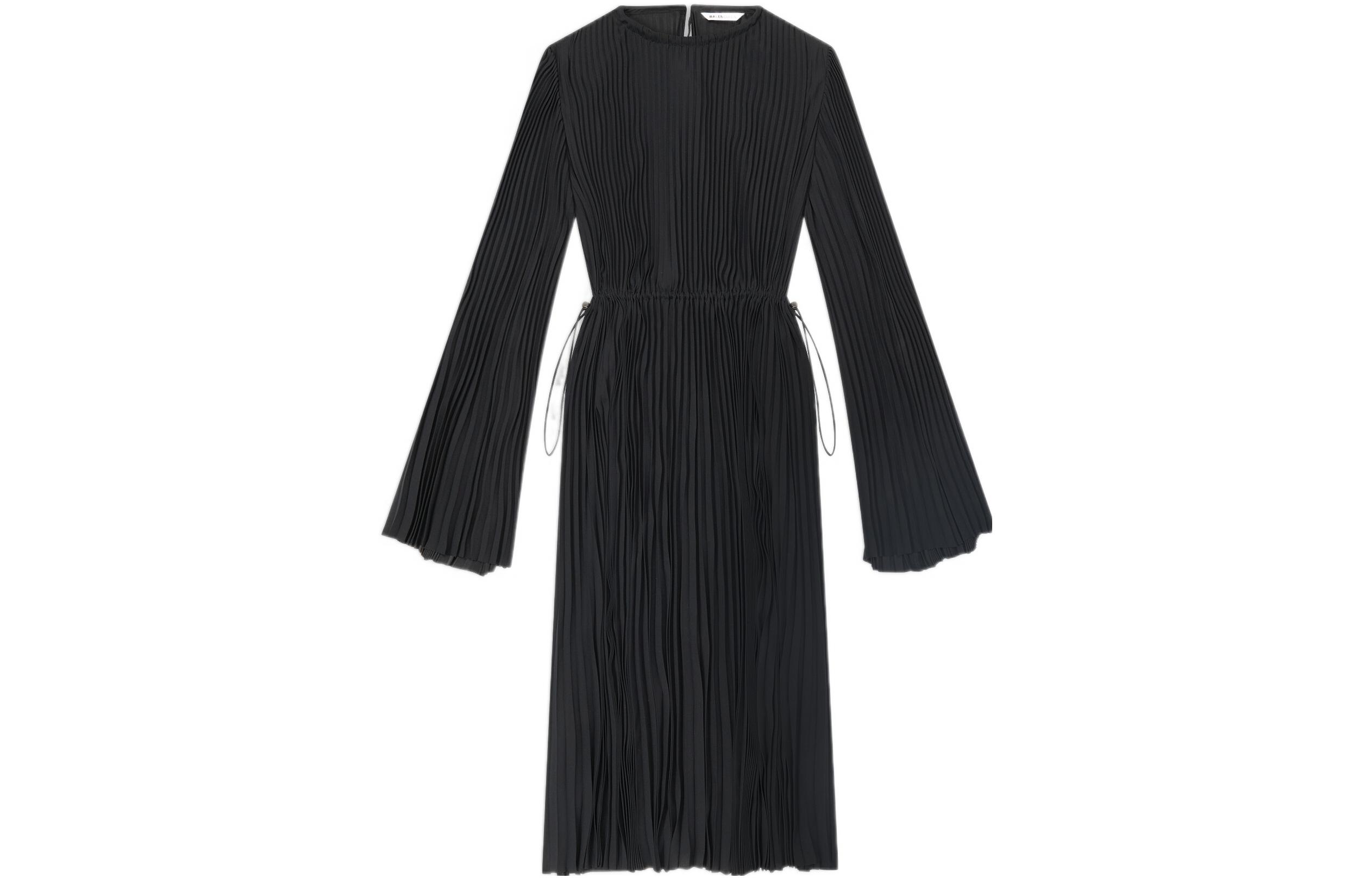 Balenciaga巴黎世家 FW22 纯色褶裥抽绳圆领长袖连衣裙 女款 黑色