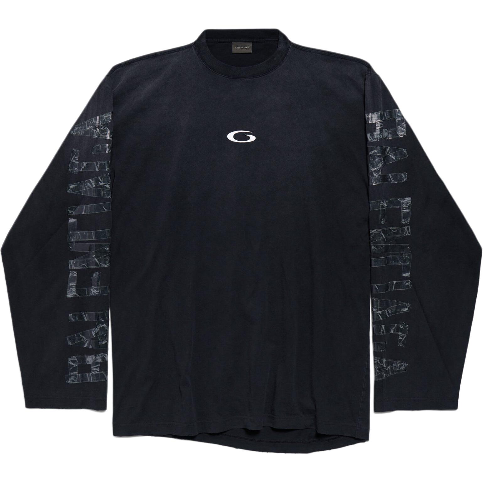 Balenciaga巴黎世家 FW25冬季系列 衣袖印花不对称下摆针织廓形长袖T恤 宽松版型 男款