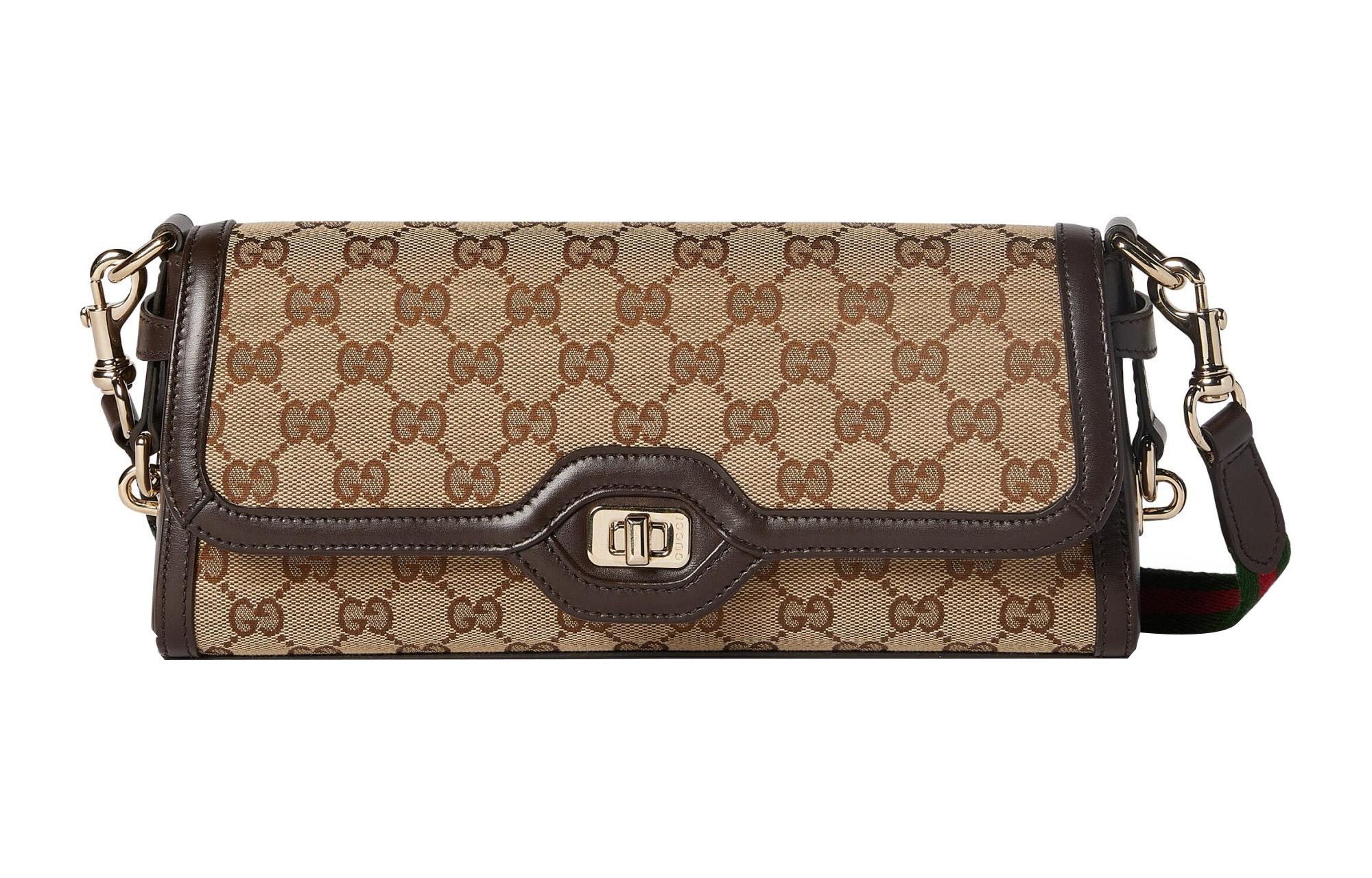 GUCCI LUCE GG CANVAS SHOULDER BAG IN BEGIE AND BLUE