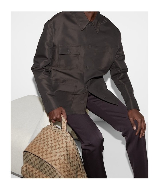 GUCCI GG CANVAS HORSEBIT SLIPPER IN BEIGE AND EBONY