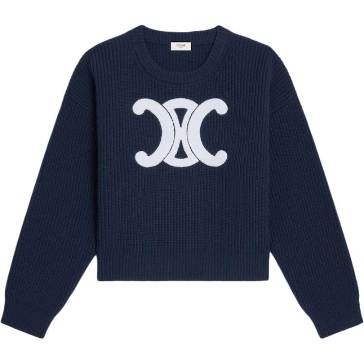 CELINE赛琳 FW25 圆领套头贴饰落肩长袖毛衣 女款 蓝色