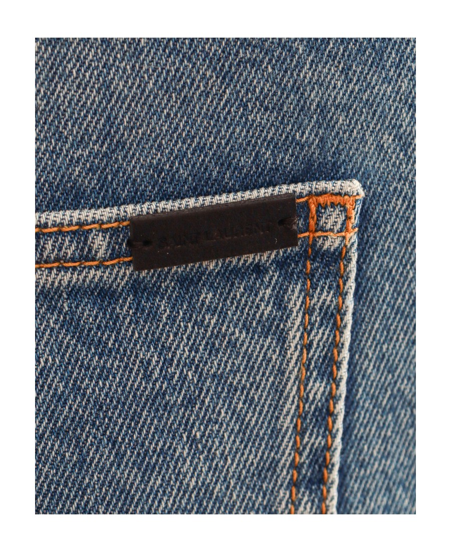 SAINT LAURENT圣罗兰 FW23 中腰纽扣褶皱宽松直筒牛仔裤 女款 蓝色