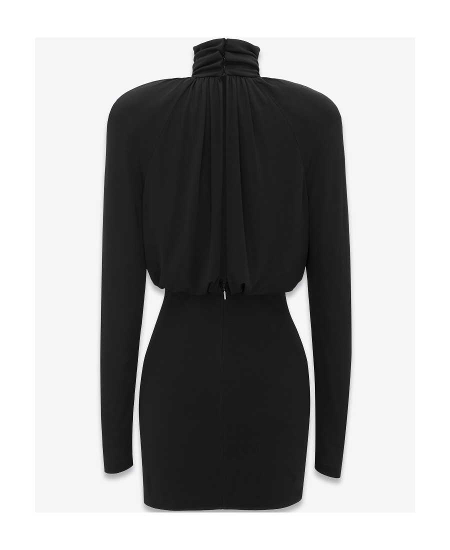 SAINT LAURENT圣罗兰 SS23 纯色收腰高领长袖连衣裙 常规版型 女款 黑色