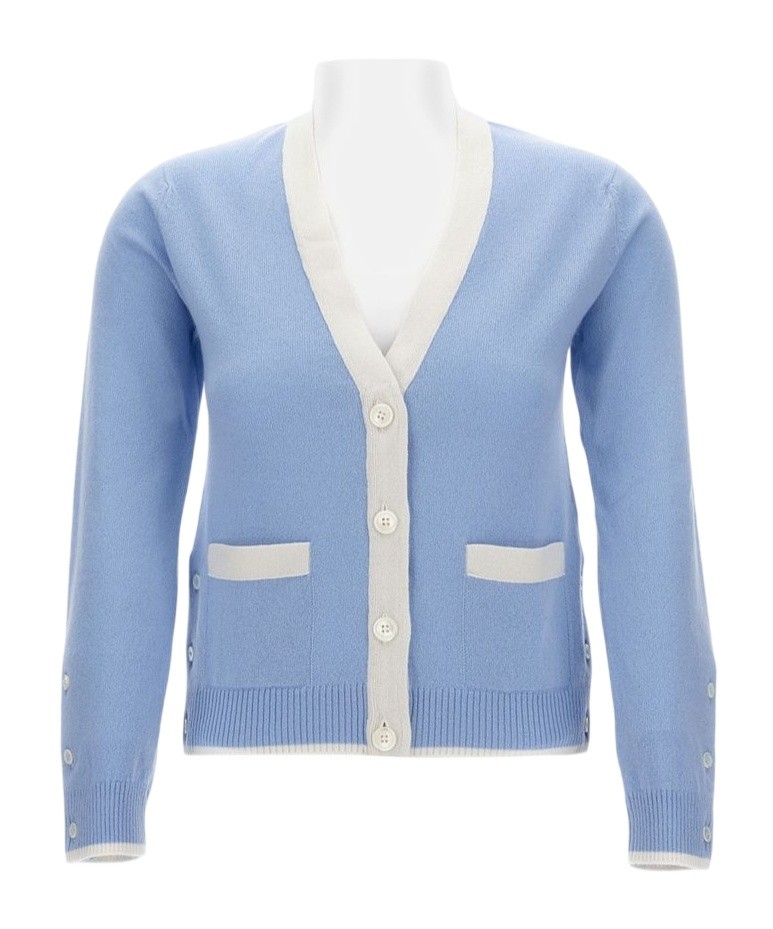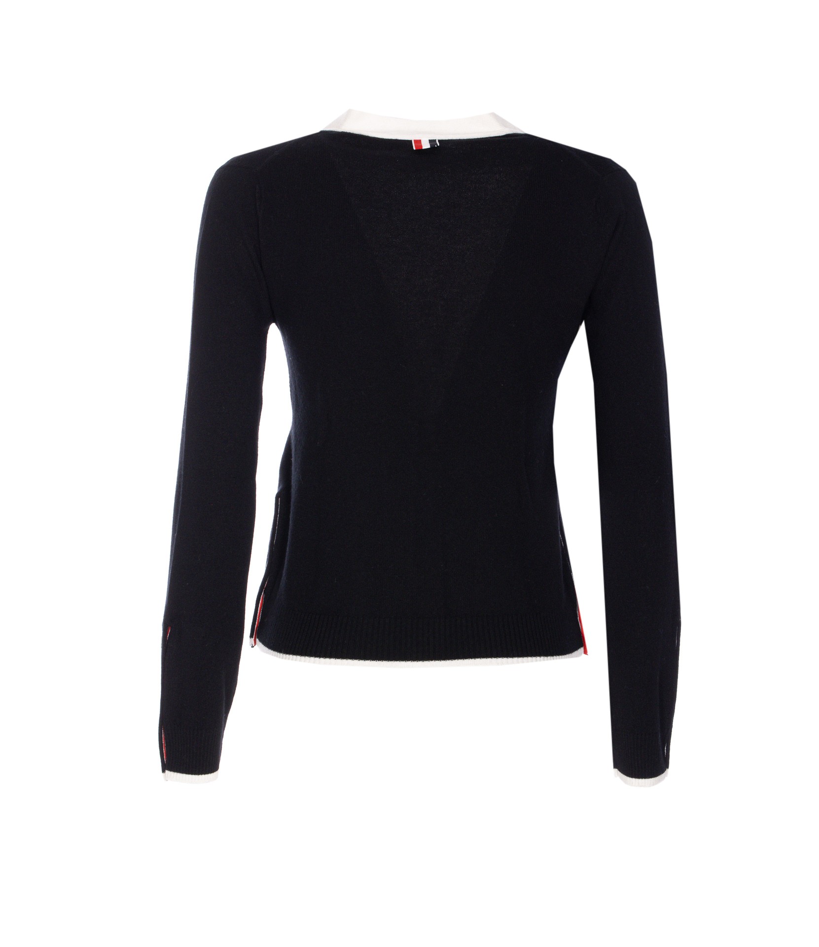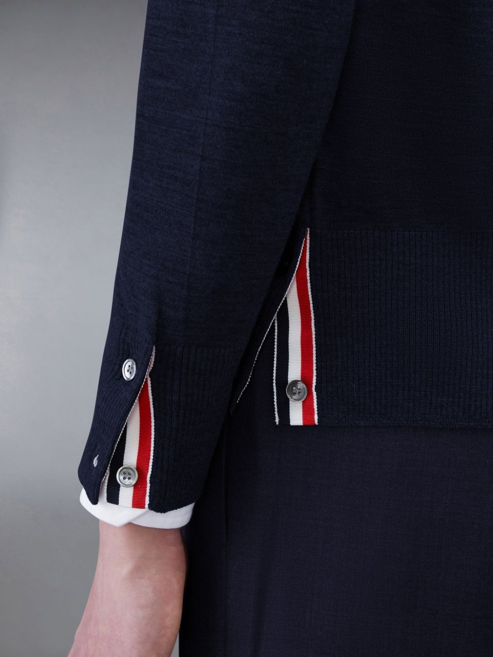 THOM BROWNE汤姆·布朗 SS22 经典四条纹羊毛V领单排扣羊毛衫毛衣 男款 深蓝色