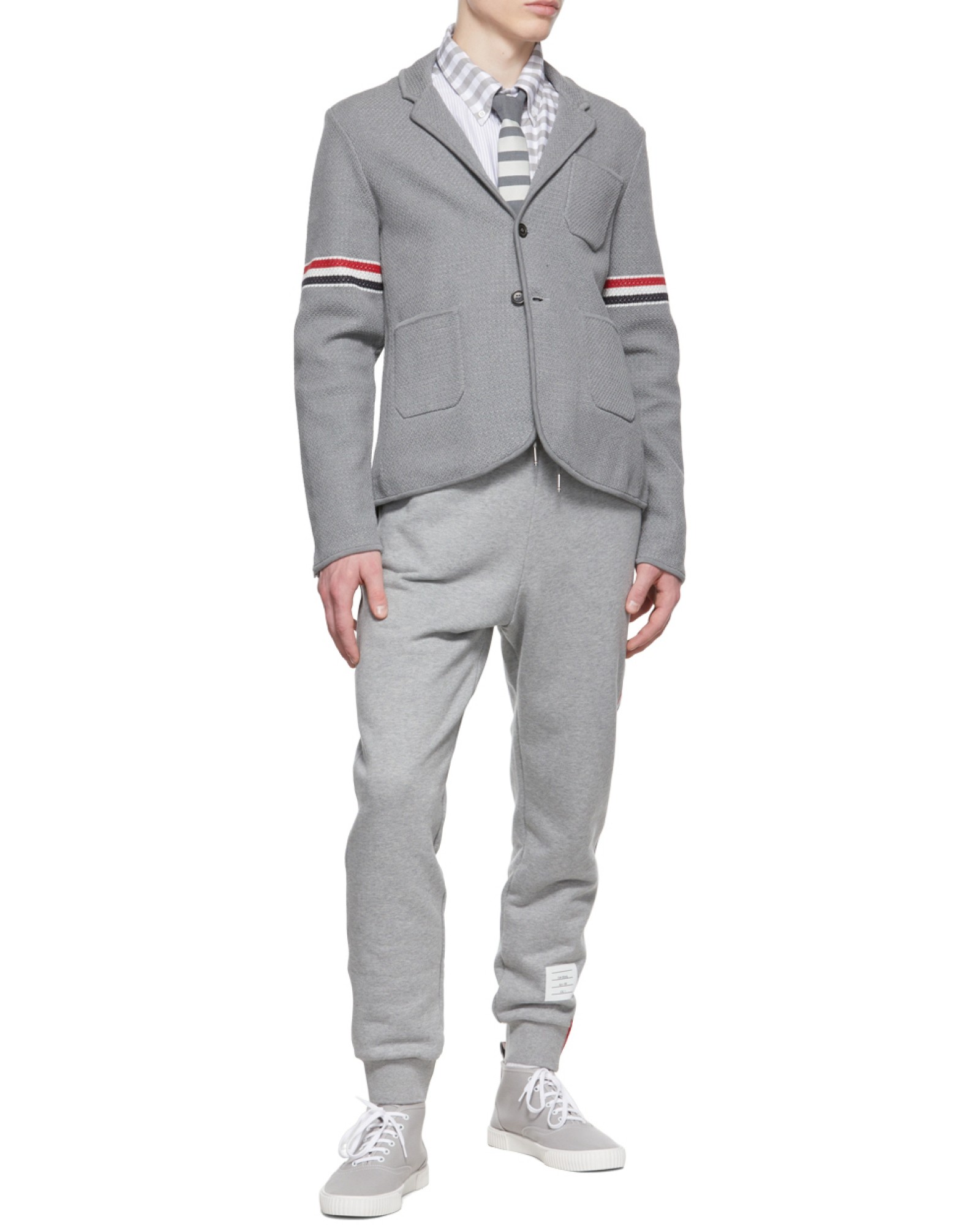 THOM BROWNE汤姆·布朗 格雷系经典四条纹舒适长卫裤直筒卫裤适中针织运动裤 春秋 男款 灰色