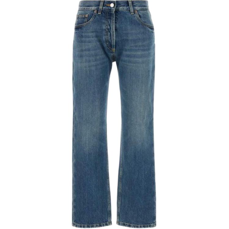 PRADA普拉达 三角标志复古直筒合身喇叭裤中腰长裤牛仔裤 男女同款