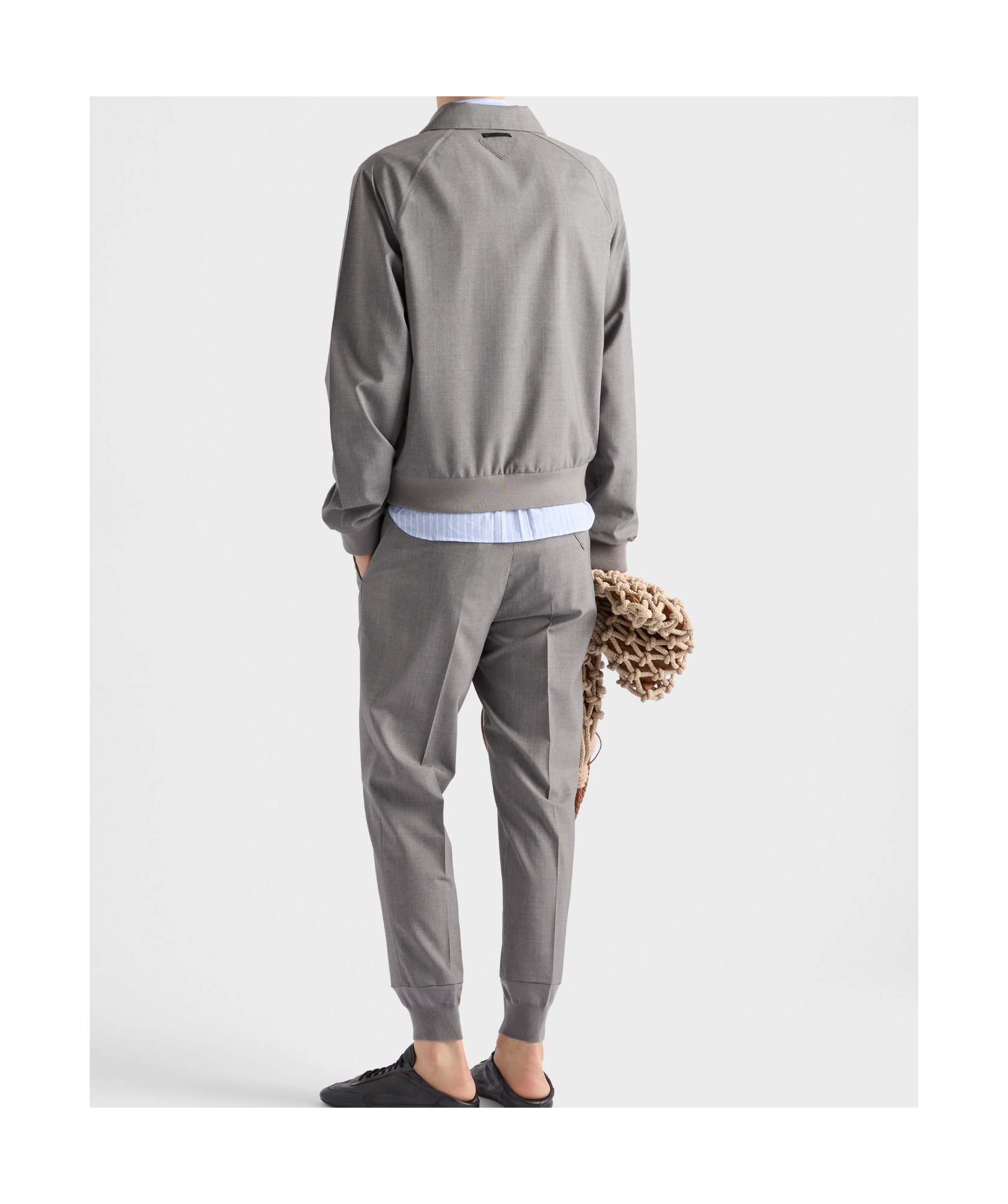 PRADA普拉达 SS24 纯色高腰直筒拉链修身休闲裤 男款 海军蓝