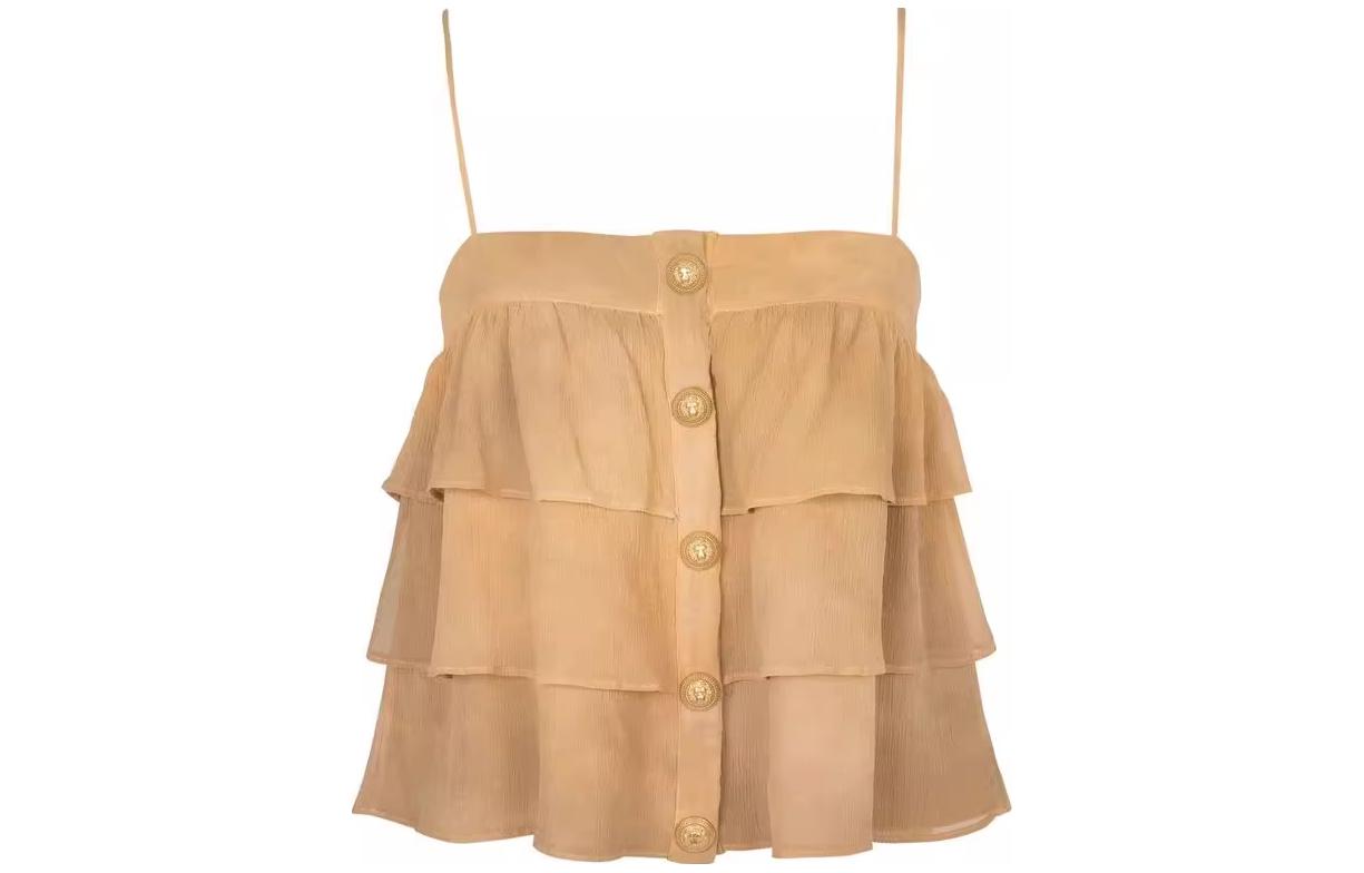 BalmainHair 亮片短款方领修身套头无袖背心 女款 黄色