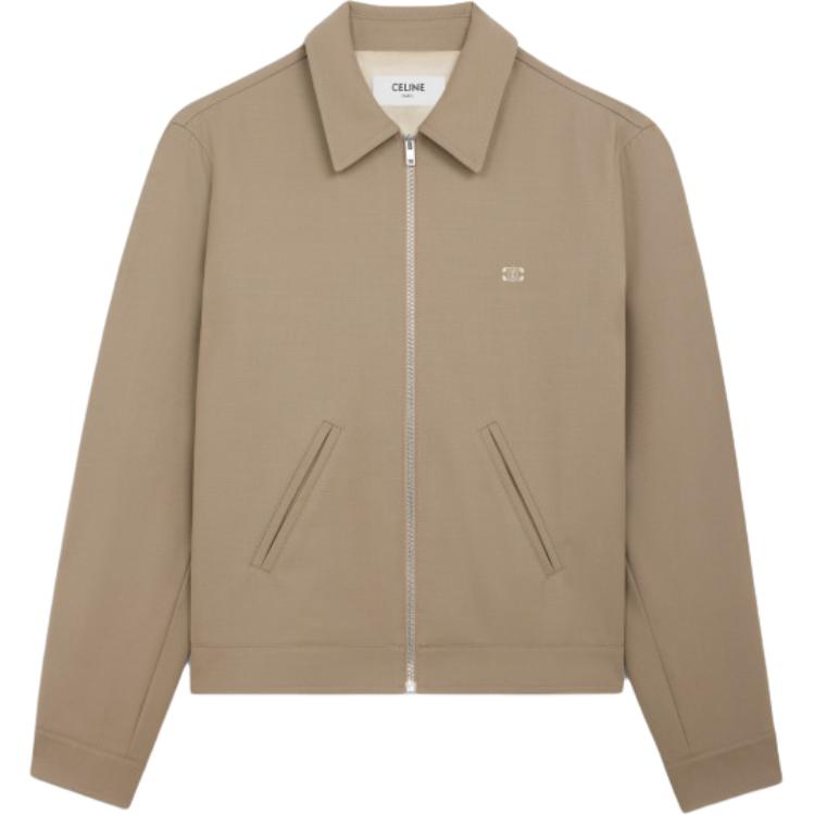 CELINE赛琳 SS25 字母印花拉链口袋翻领长袖夹克外套 男款 驼色